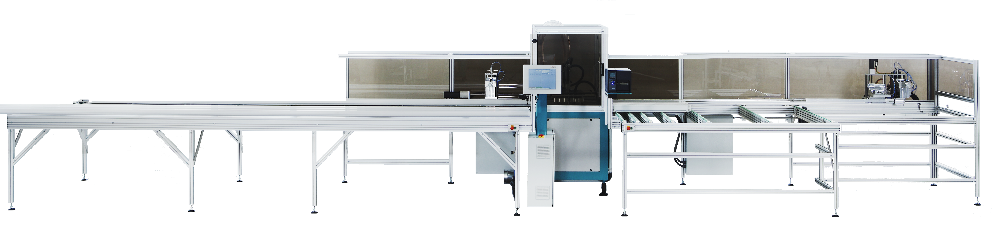 Very flexible machining and cutting CNC centre for a complete cutting and machining of PVC profiles.