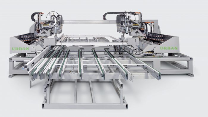 CNC controlled double-head corner cleaning machine for a maximal capacity of production.